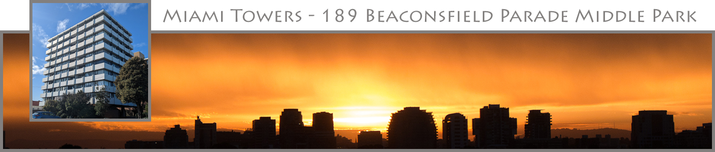 Miami Towers is an architecture award-winning 10 story apartment building developed in the late 1960s, located on the corner of Beaconsfield Parade and Wright Street in Middle Park. The address of the building is 189 Beaconsfield Parade Middle Park.
