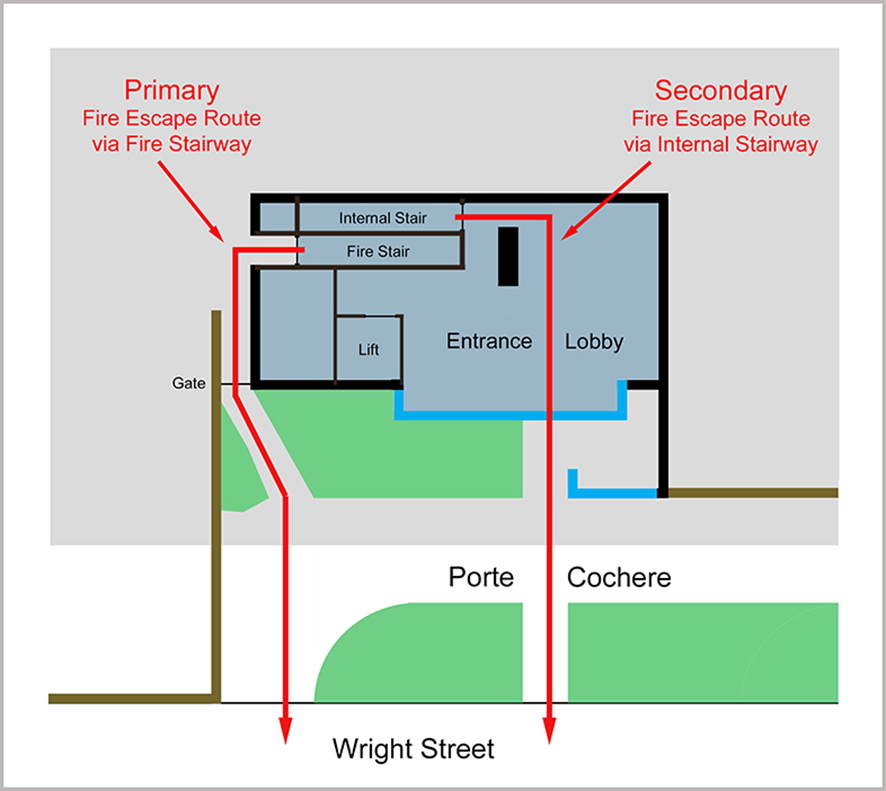 When you leave the building assemble with the other residents who have left the building on the western footpath of Wright Street opposite our building.
